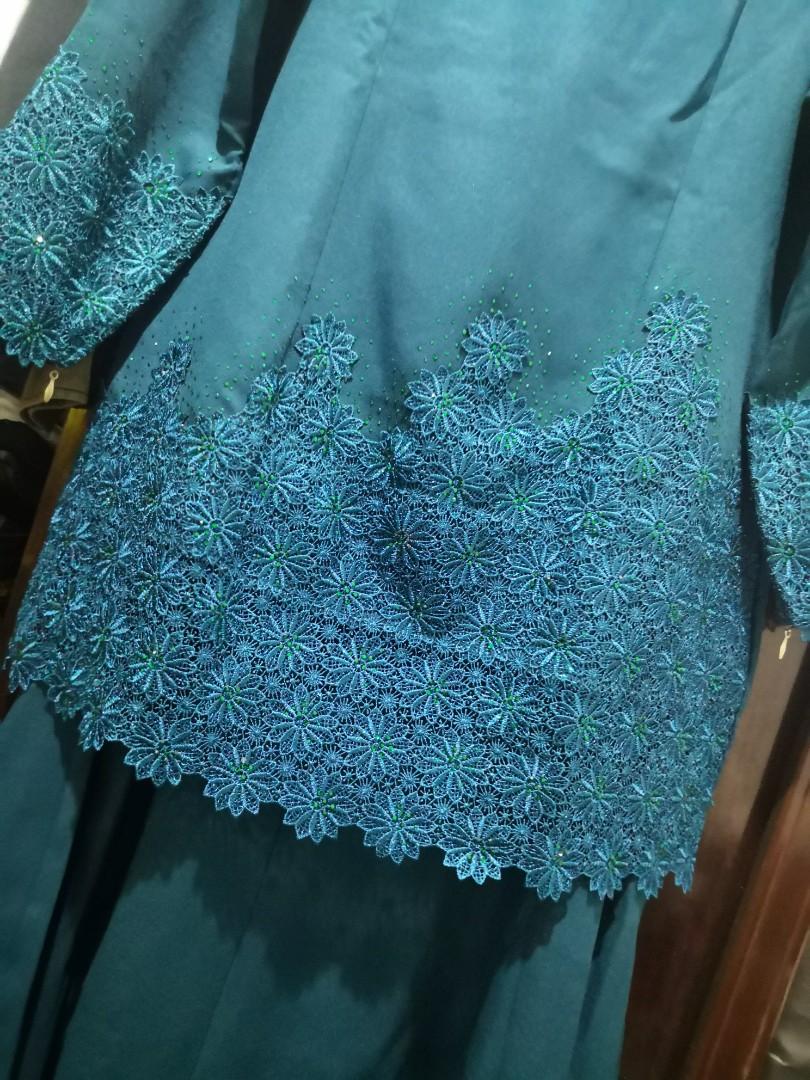 Sabiha Baju Kurung Turqoise Green Sarang Burung Women S Fashion Muslimah Fashion Baju Kurung Sets On Carousell